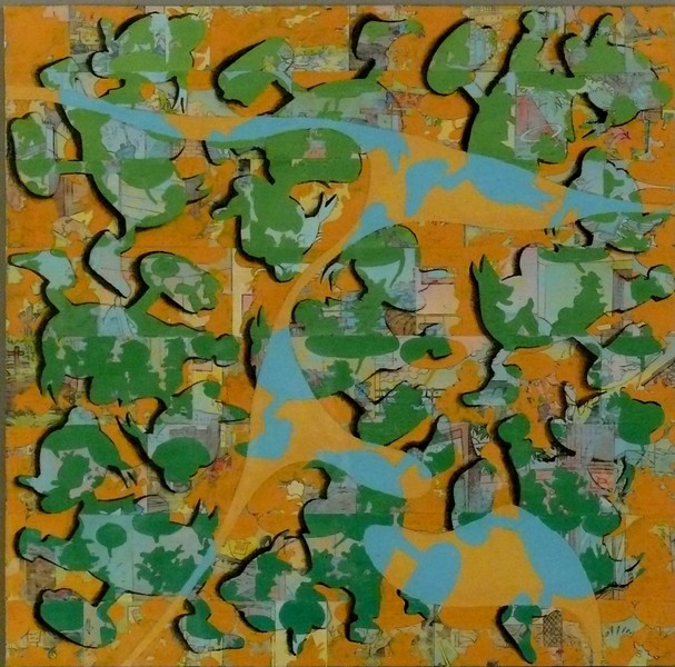 Ricorrendo a una tecnica mista di collage e acrilico,compongo un percorso